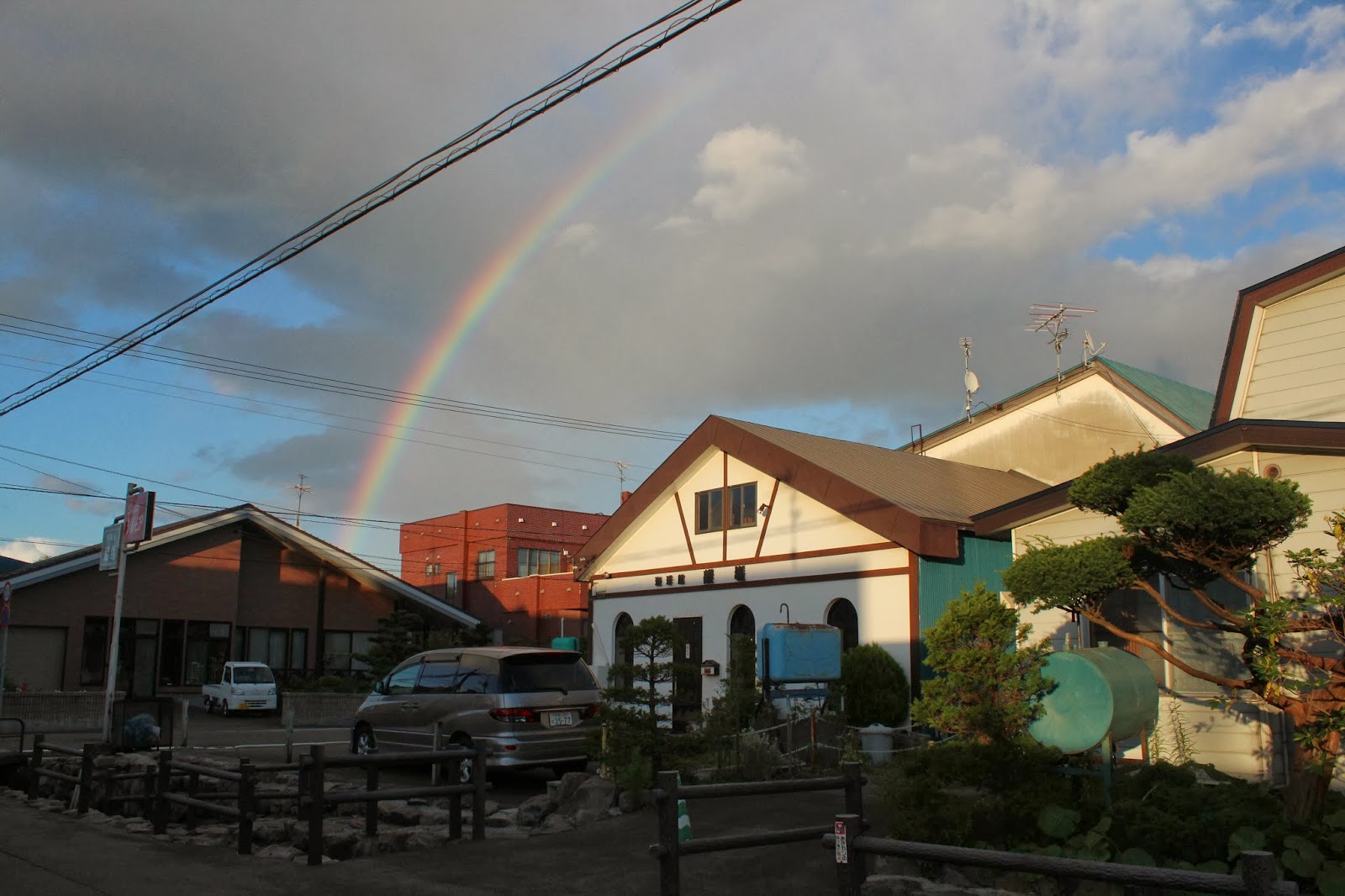 近くのセイコーマートと薬局で夕食と朝食を買います。金が欠乏したため、友人に1000円を借ります…。まだ虹が見えます。